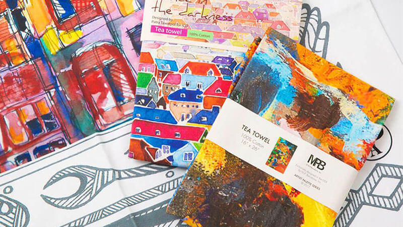 Our tea towels are perfect for a wide range of businesses, including art galleries, museums, bakeries, cafes, schools, universities, and tourist attractions. Not only are they a practical and useful item, but they also provide ongoing exposure for your brand, as they can be used again and again.